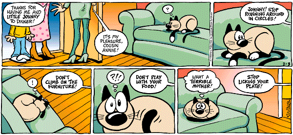 Human cousin: 'Thanks for having me and little Johnny to dinner!'