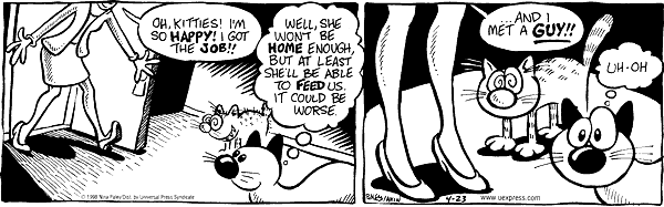 Human: 'Oh, kitties, I'm so happy! I got the job!'