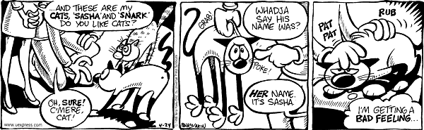 Panel 2: Male hand has grabbed Sasha by her scruff and is lifting