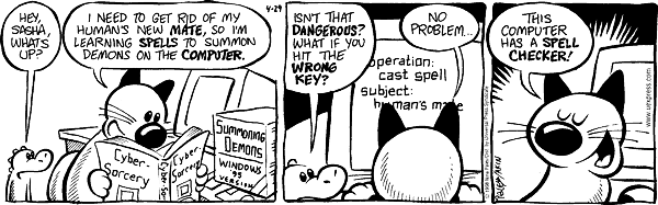 Panel 2: Sasha looks pleased as she paws the keypad.